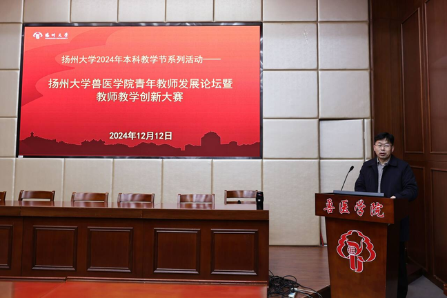 12月12日下午,我院在兽医大楼二楼报告厅隆重举办2024年本科教学节系列活动——扬州大学兽医学院青年教师发展论坛暨教师教学创新大赛。兽医学院院长王志强出席本次大赛。比赛评委专家由我院督导组陶建平教授、邢华教授、卞建春教授、张金龙教授、李金贵教授、成大荣教授和王小波教授担任。本次参赛教师有7位青年教师,分别为高如一、印云聪、郑王龙、李拓凡、刘康军、陈帅、张娣。由秦涛副院长主持比赛。