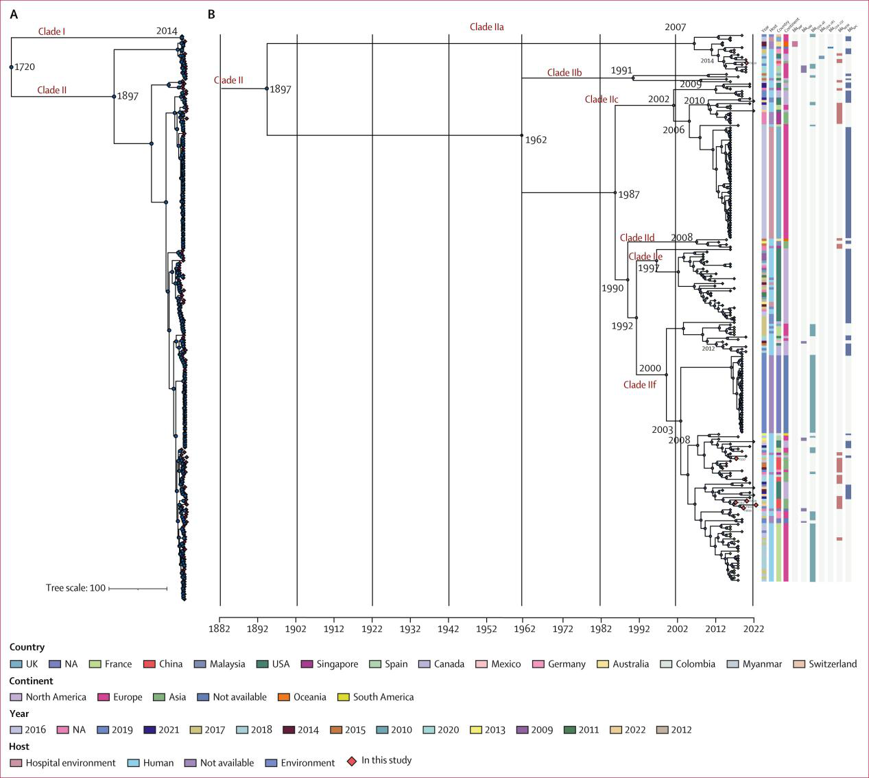 近日,国际顶级医学期刊The Lancet Microbe在线发表了我院与浙江省人民医院的合作研究成果“Global emergence and transmission dynamics of carbapenemase-producing Citrobacter freundii sequence type 22 high-risk international clone: a retrospective, genomic, epidemiological study”。