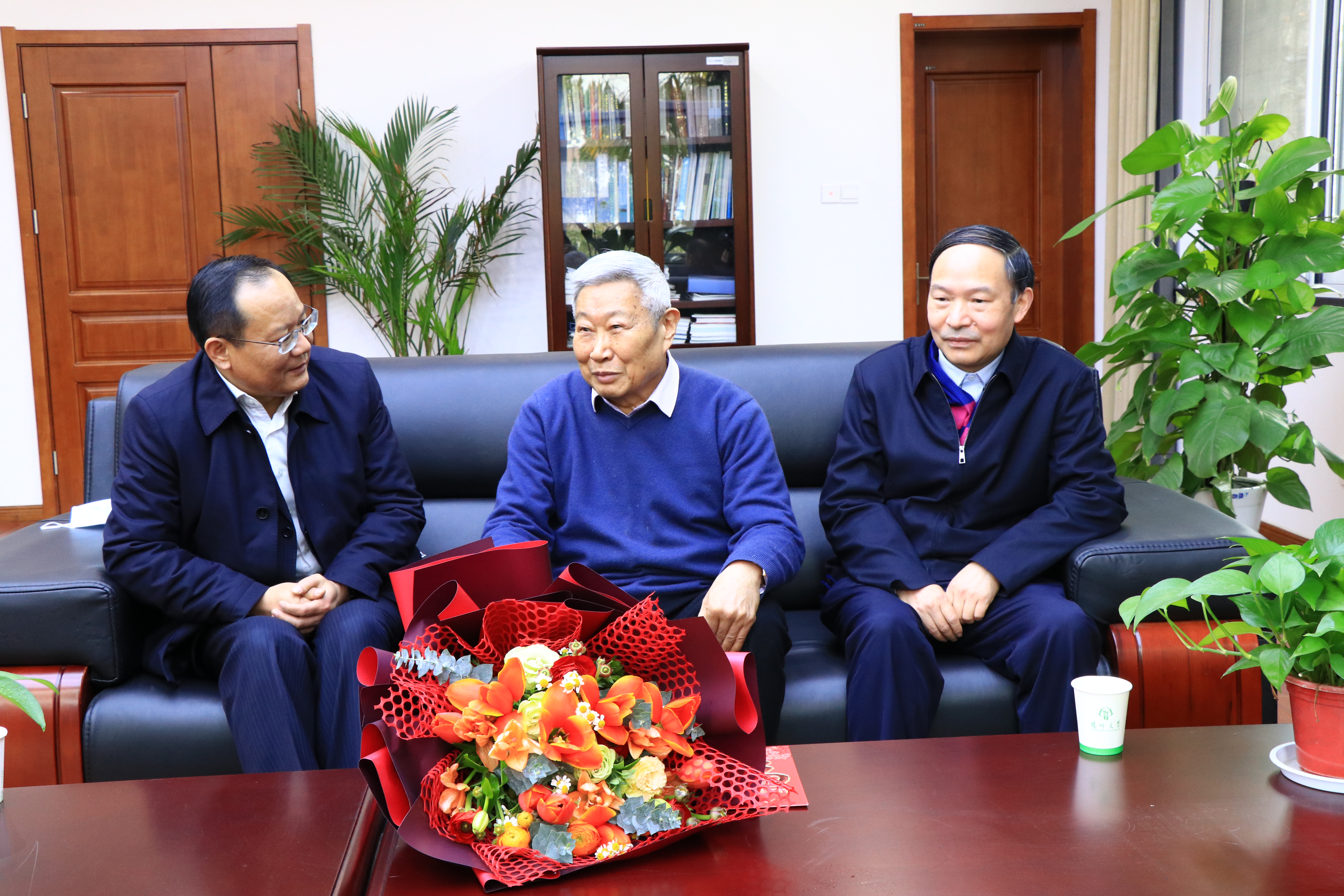 在文汇路校区16号楼,焦新安、丁建宁向刘秀梵院士送上鲜花,感谢他为学校学科建设、科学研究、社会服务、人才培养等付出的辛勤劳动,并就学校事业发展的相关事项与刘秀梵院士进行了交流。刘秀梵院士对学校近年取得的成绩表示祝贺,当前学校正处于历史上最好的发展机遇期,也处于高水平研究型大学建设的关键突破期,希望学校抢抓高等教育新一轮发展机遇,乘势而上,不断前进。