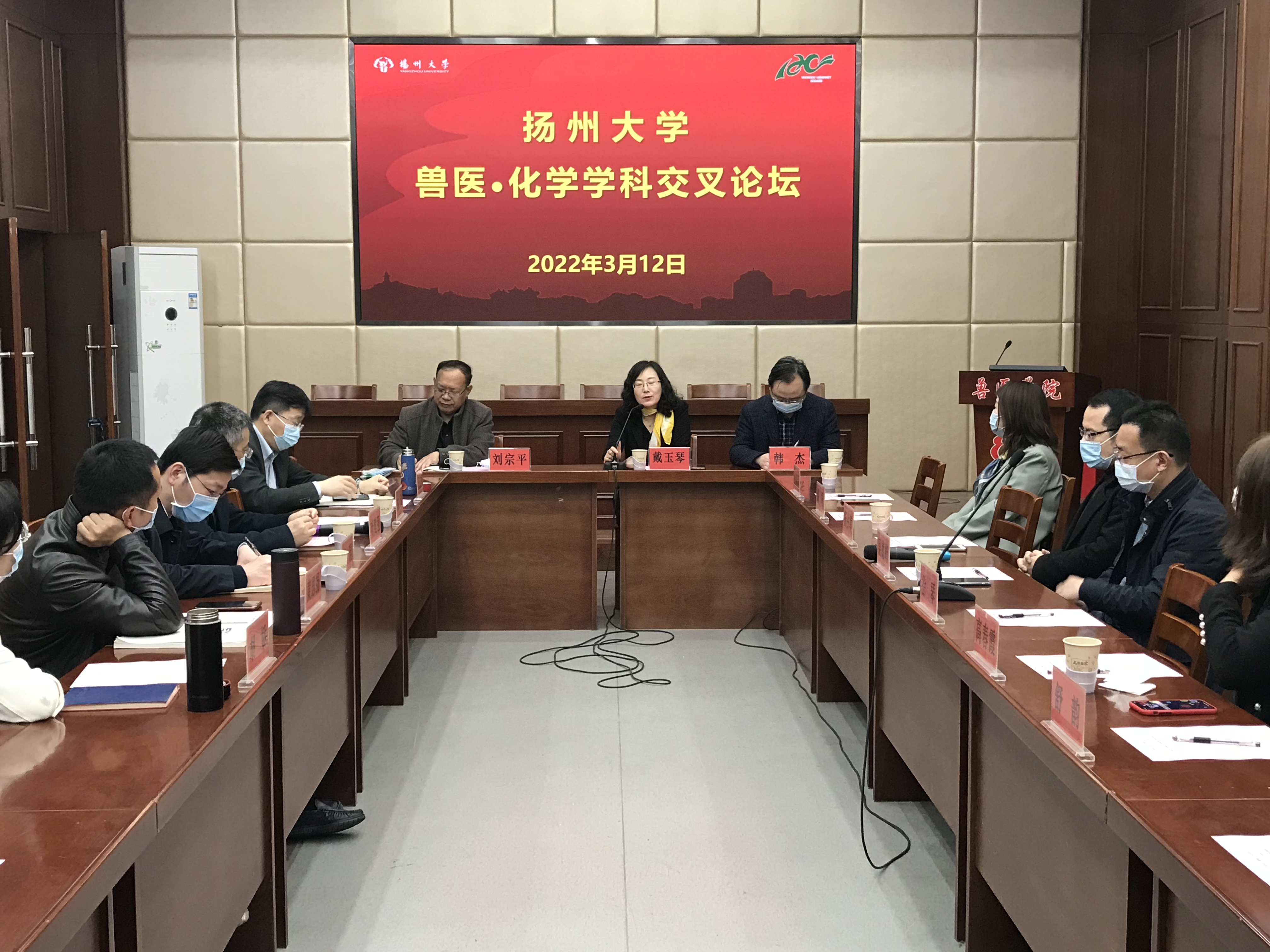 3月12日上午,扬州大学“兽医·化学”学科交叉论坛在文汇路校区29号楼举办。校学科建设办公室主任戴玉琴、兽医学院院长刘宗平、化学化工学院院长韩杰出席本次会议,来自兽医学院、化学化工学院、动科学院、机械学院等近40位师生参加了论坛,论坛由兽医学院副院长钱琨和化学化工学院副院长吴德峰共同主持。