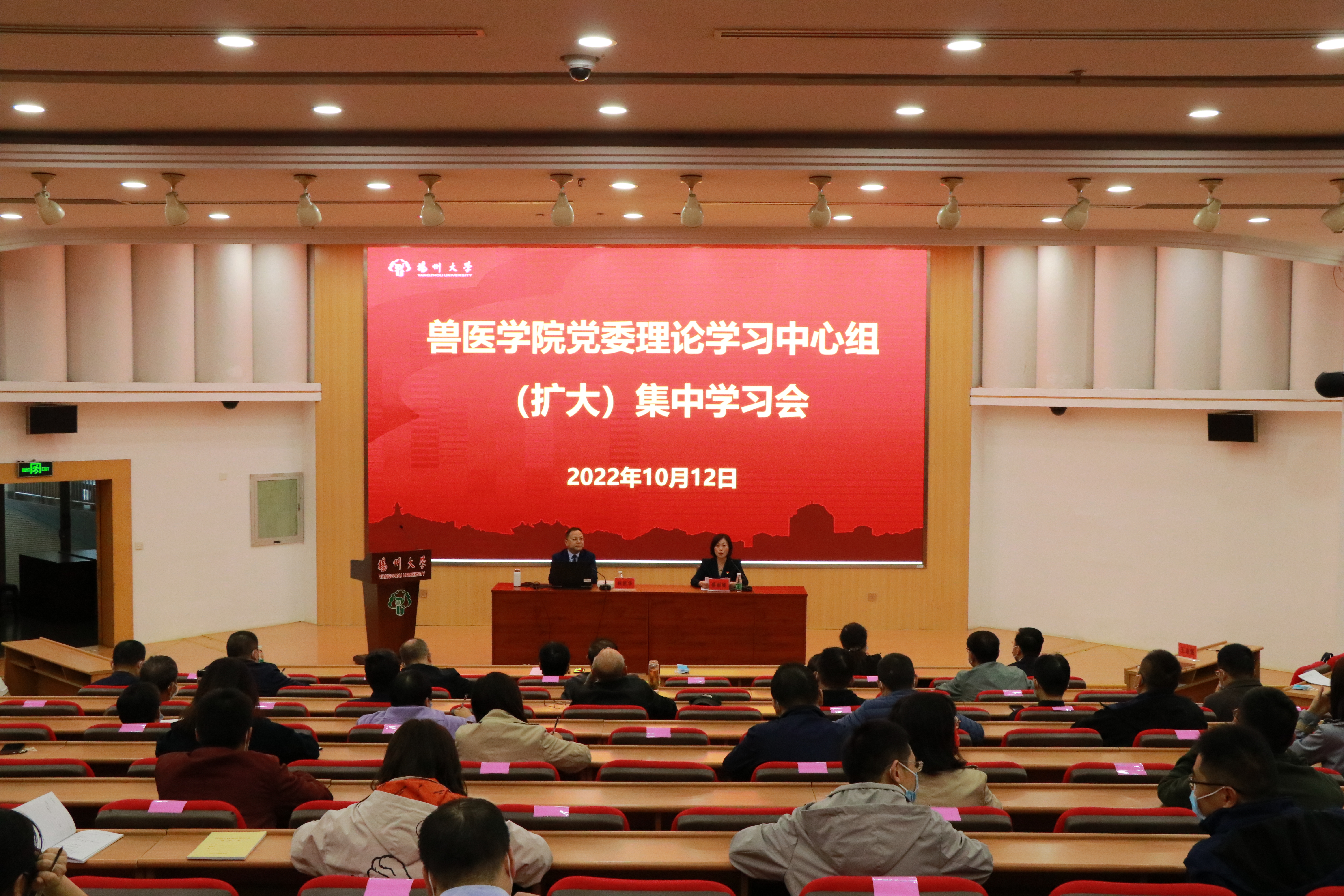 10月12日,兽医学院在荷花池校区逸夫报告厅举行党委理论学习中心组(扩大)集体学习会,专题学习《习近平谈治国理政》第四卷。院党委书记蔡丽娅主持会议并讲话。院党委理论学习中心组成员及全院教职工参加学习。