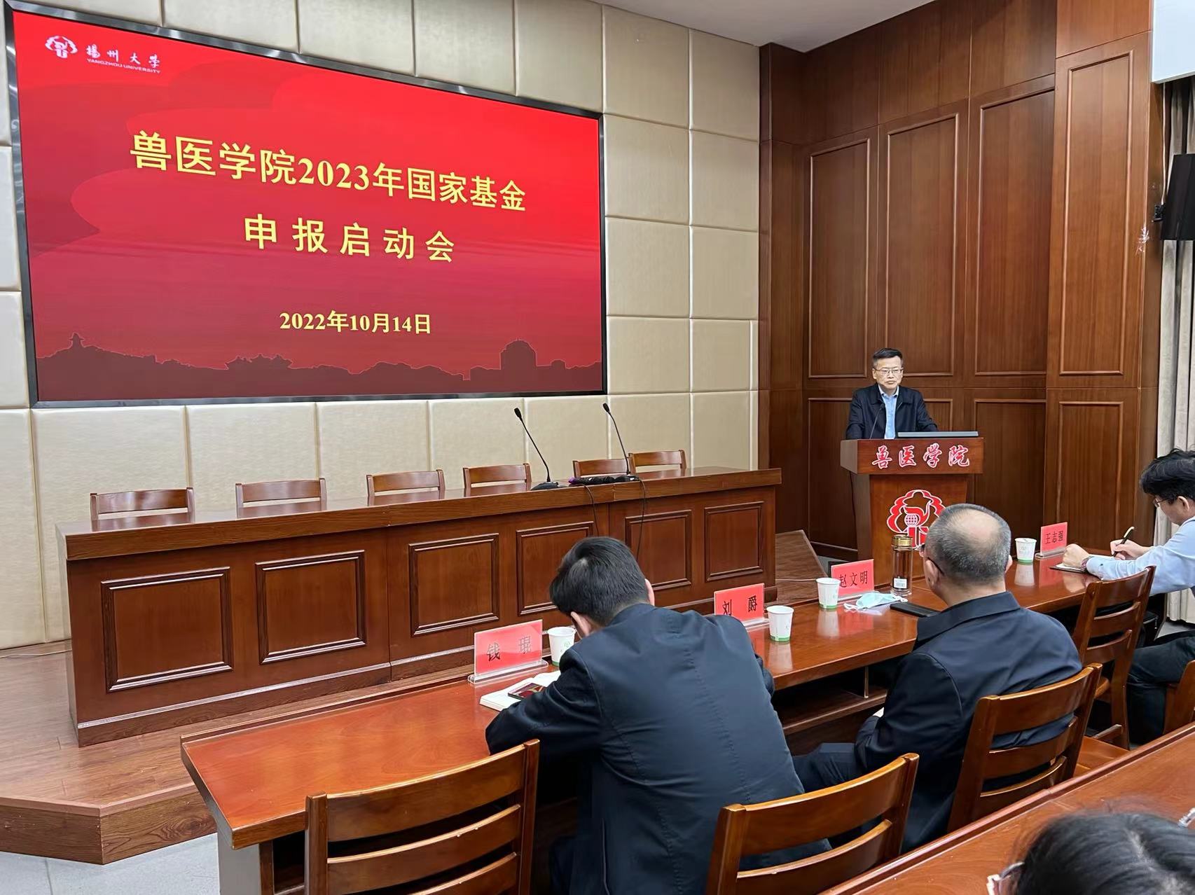 10月14日下午,学院2023年国家自然科学基金项目申报启动会在学院二楼科技报告厅举行。扬州大学副校长赵文明,学院全体院领导、刘爵教授等参会,会议由院长王志强主持。