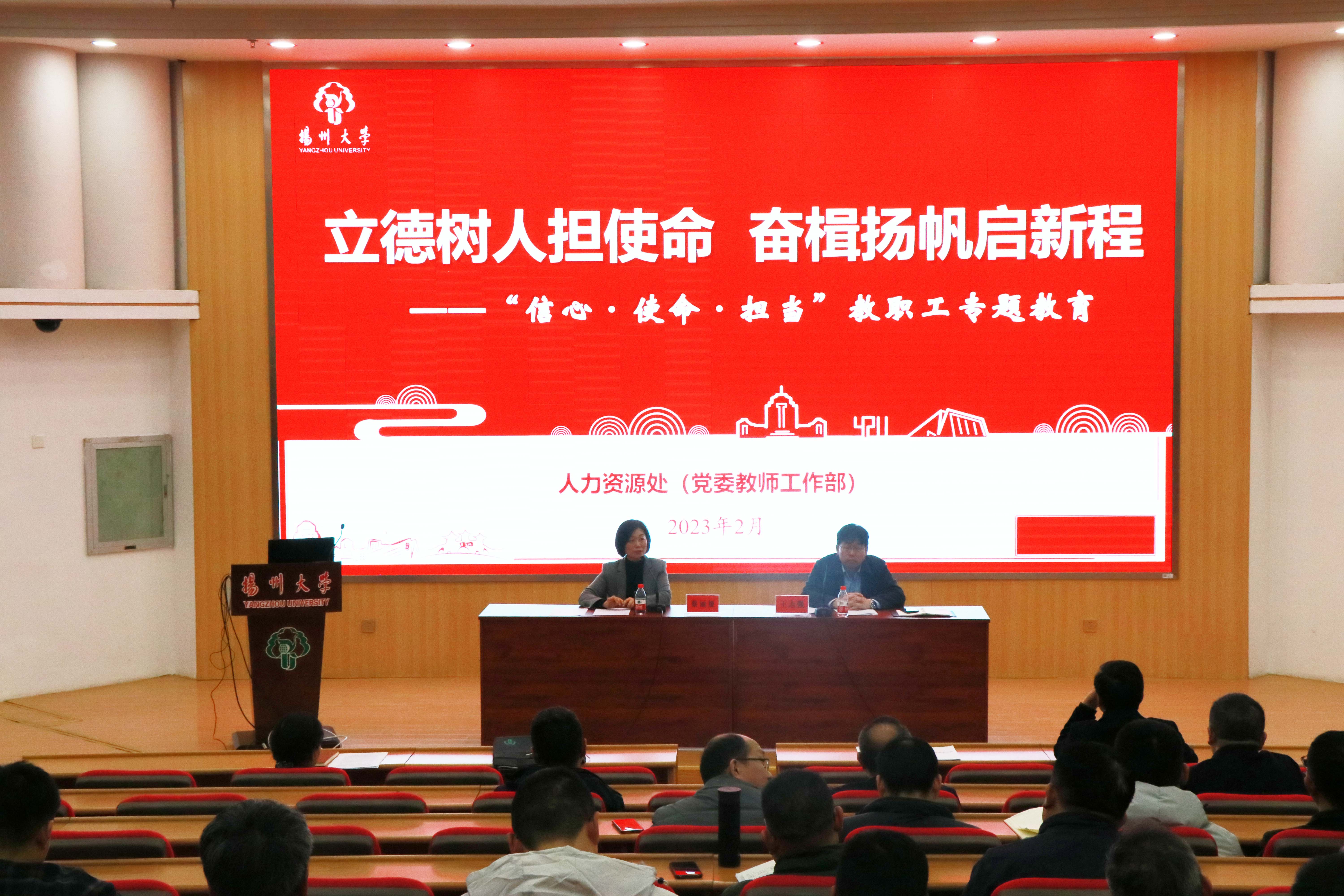 最后,按学校统一部署,学院开展了《立德树人担使命 奋楫扬帆启新程》教职工“开学第一课”专题教育。蔡丽娅从厚植家国情怀,以奋进之姿开启中国式现代化新征程;厚植教育情怀,以实干之笔书写教育现代化新篇章;厚植扬大情怀,以拼搏之心绘就高水平研究型大学现代化新蓝图三个方面,要求全体教职工要坚持以立德树人为根本,以强农兴农为己任,厚植家国情怀、厚植教育情怀、厚植扬大情怀,发扬党员干部“敢为”、 机关部门“敢闯”、师生员工“敢首创”、学院“敢干”的“四敢”精神,在开局之年全力推动谱写“现代化新篇章”的新实践。