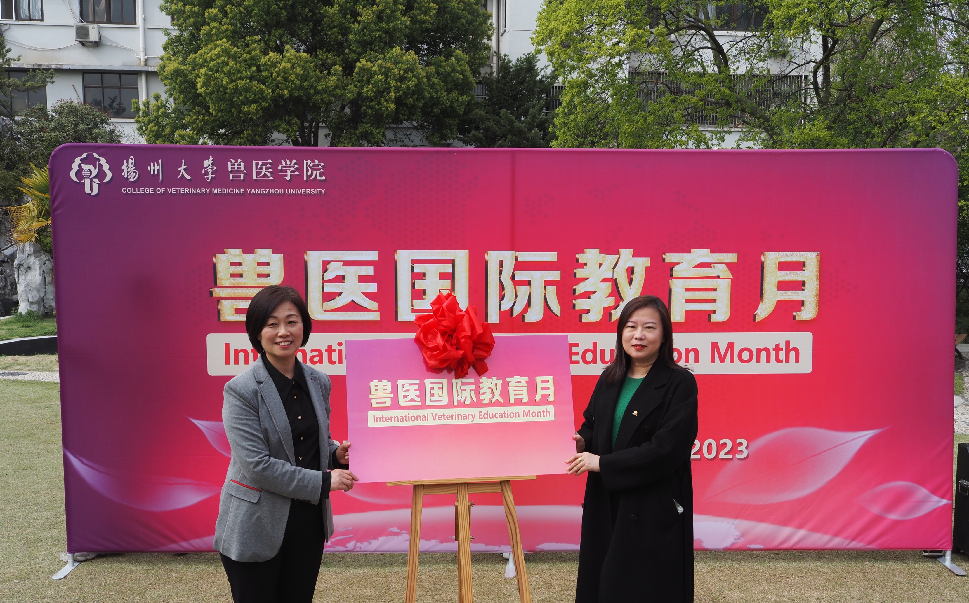 最后,国际合作与交流处张吟处长、蔡丽娅书记共同为“兽医国际教育月”揭幕。